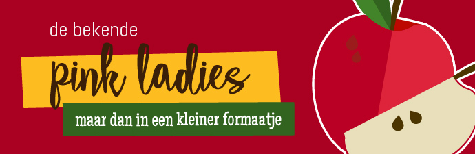 De Pink Lady appel is ontstaan uit een kruising tussen Cripps Pink, Rosy Glow of Sekzie. Het is 's werelds bekendste merknaam in appels. Deze appel is herkenbaar aan haar ranke vorm en haar, bijne egale, dieproze kleur. Deze maat S appeltjes zijn een sortering kleiner dan de premium. Formaatje broodtrommel. Of schoolappels. Goede appels voor een klein prijsje!